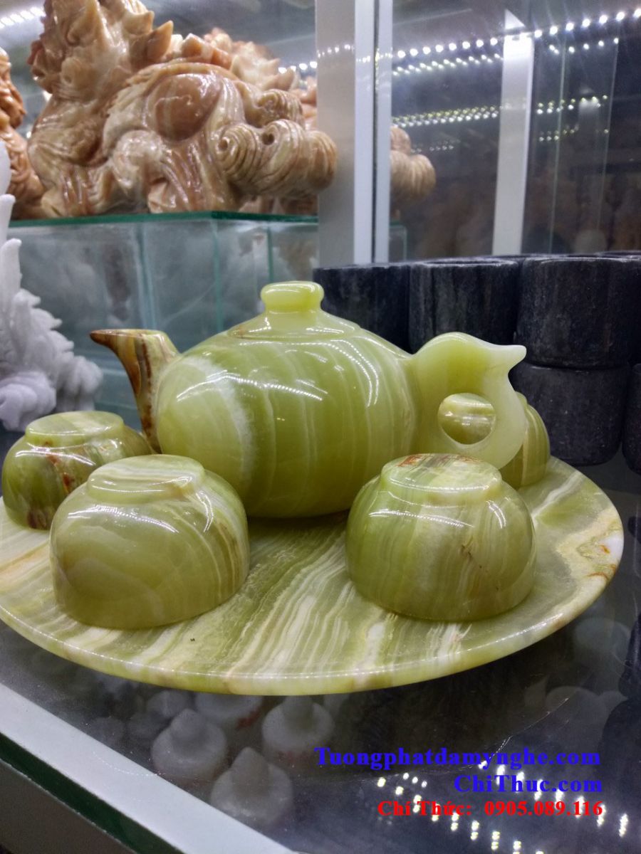Bộ ấm pha trà bằng đá non nước, tích tụ tinh hoa đất trời sẽ giao hòa với vị thanh sắc của nước trà và thăng hoa hương vị của ấm trà trở nên tuyệt hảo, tạo cảm hứng cho người thưởng thức nó.